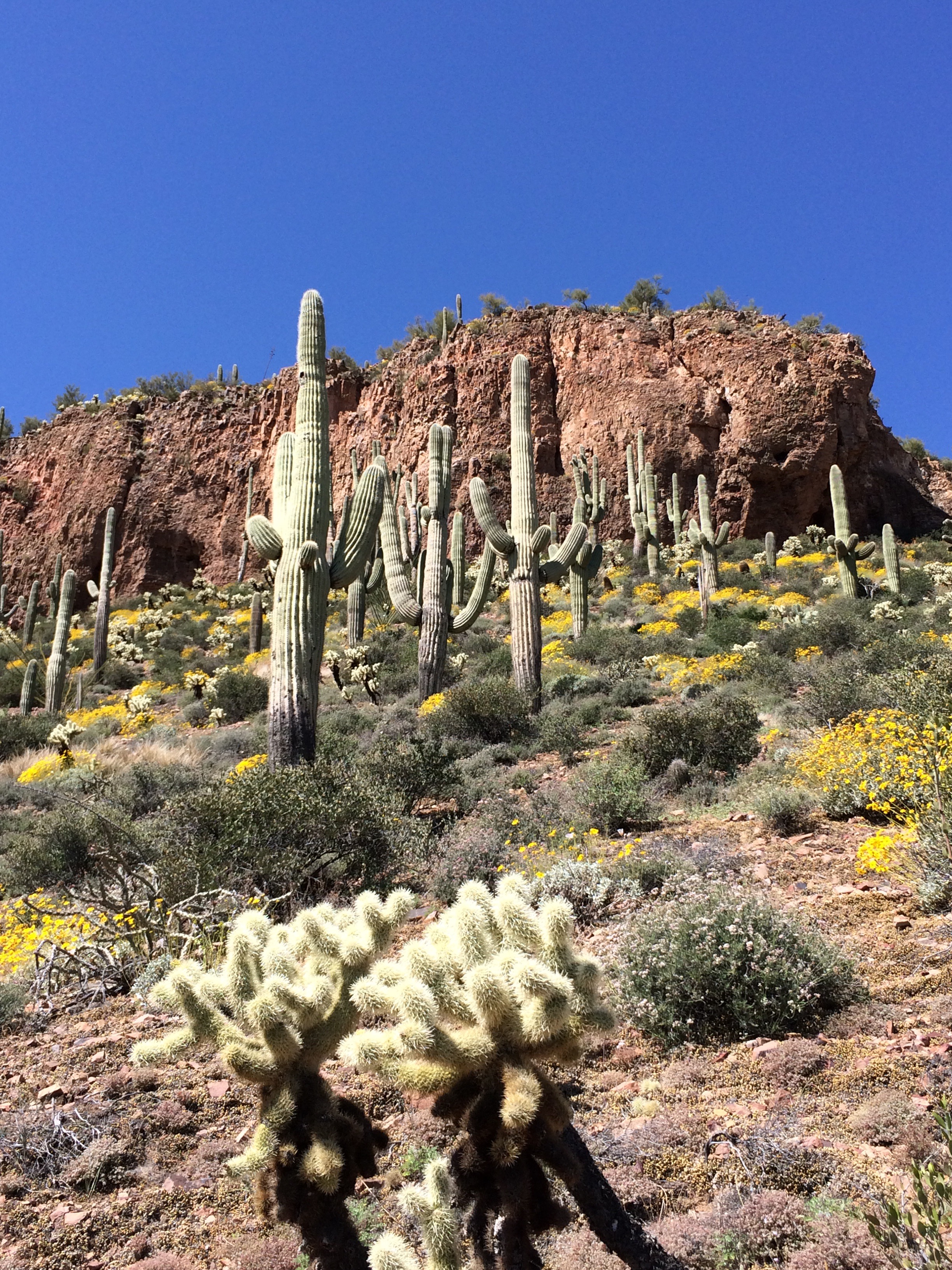 Near Lake Roosevelt in central Arizona, you can find the Tonto National Monument. If you visit in March you will find the plants abloom. The cliff dwellings are impressive too. The Apache Trail is a treacherous but scenic drive.