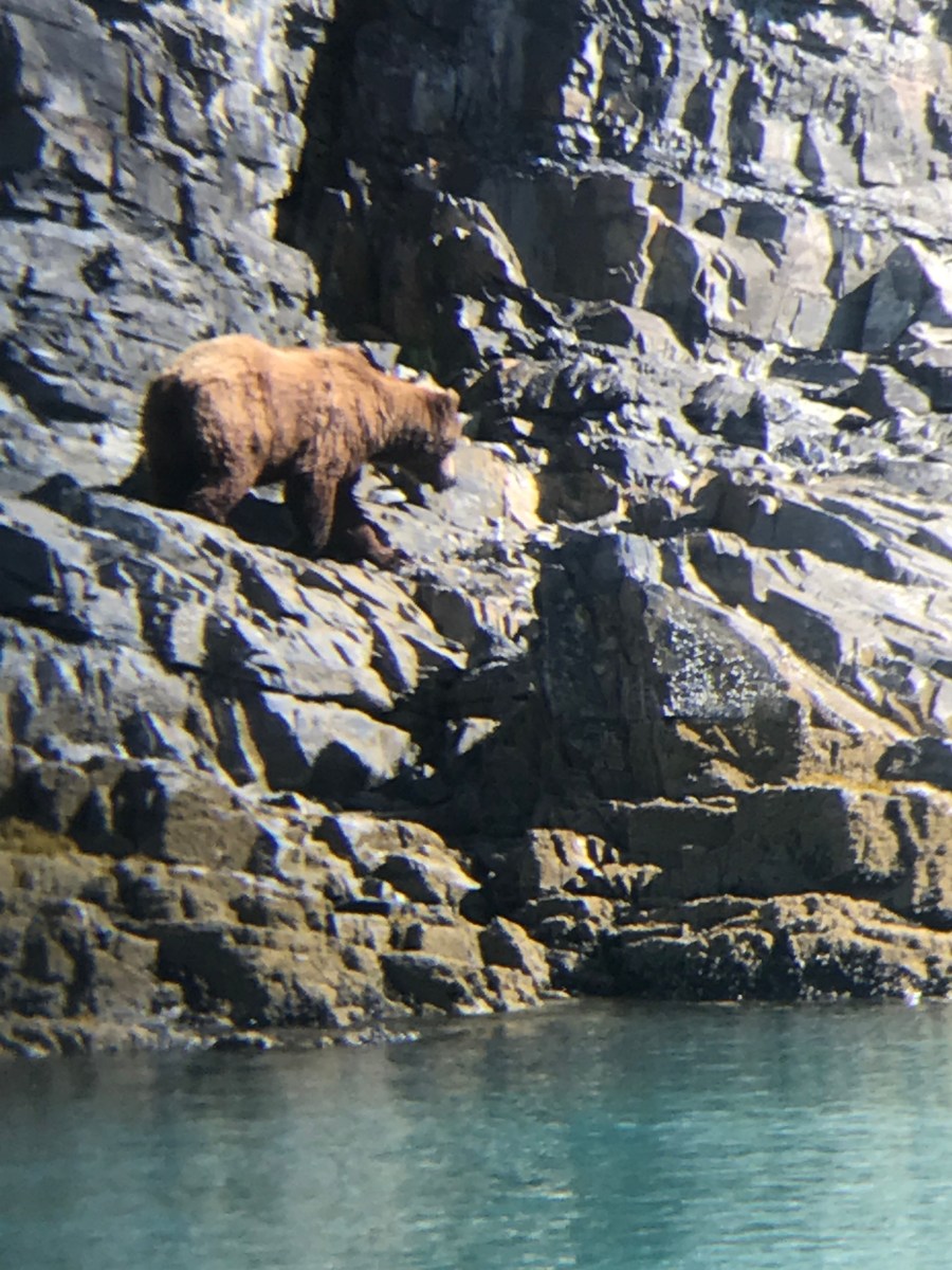 A grizzly patroling the shore
